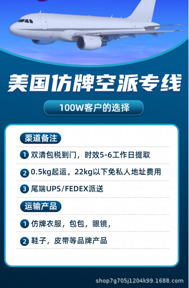 美国空派专线是由前段空运到美国机场+尾程由UPS/FEDEX指定派送的服务。全程一条龙服务,双清包税派送到门,提取稳定,时效稳定,相对于传统快递而言,解决了客户的清关烦恼问题。